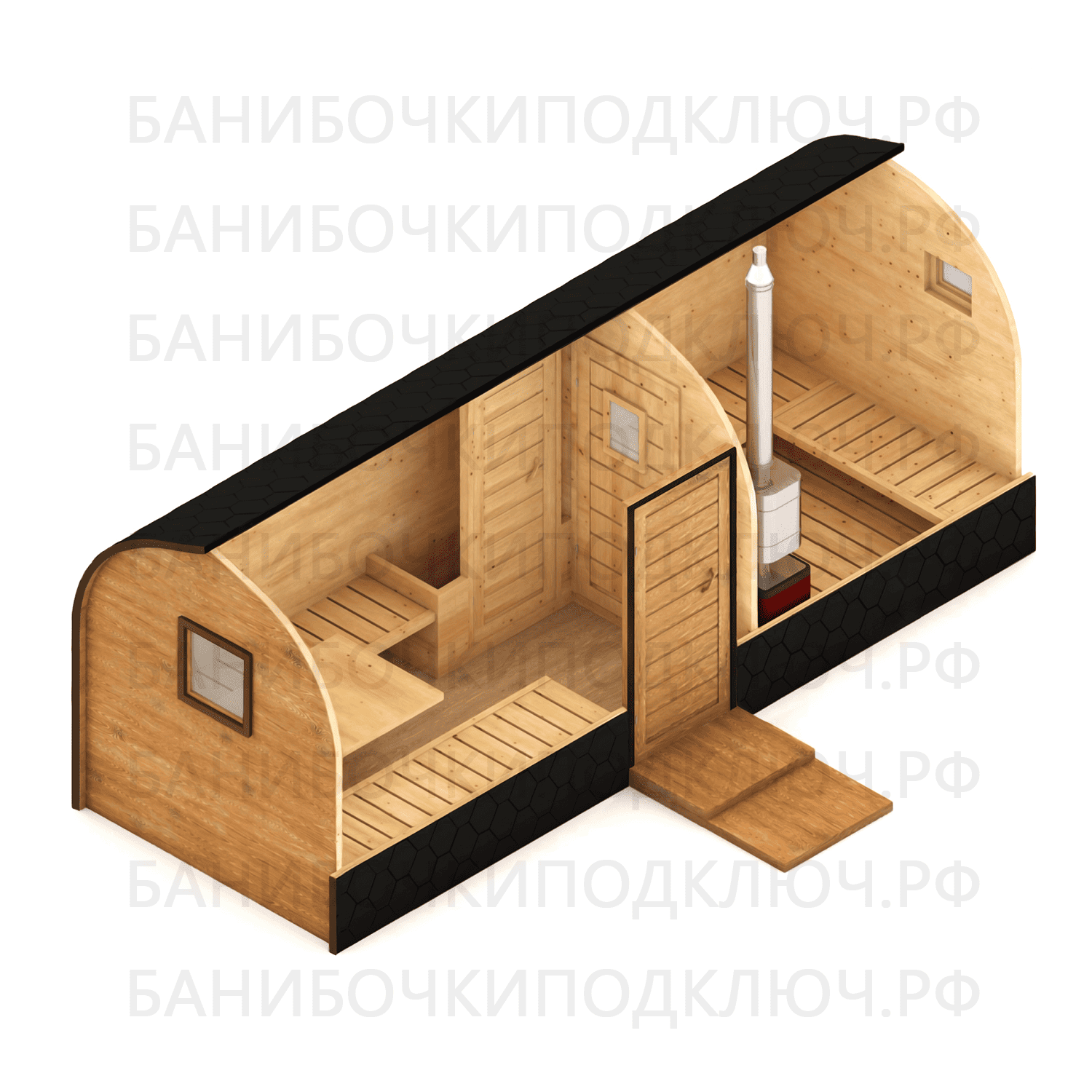 Баня парус 6 x 2,3 м в комплектации "ЛЮКС"